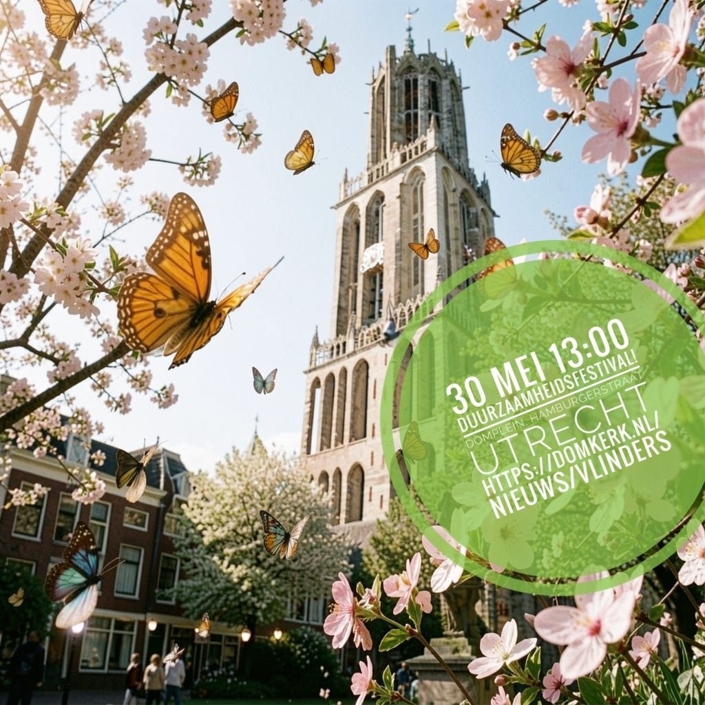 Zaterdagmiddag 30 mei 2026. Festival Je Geeft Me Vlinders, Domkerk & Lutherse kerk. Organisatie Duurzame Kerkenoverleg Utrecht. .