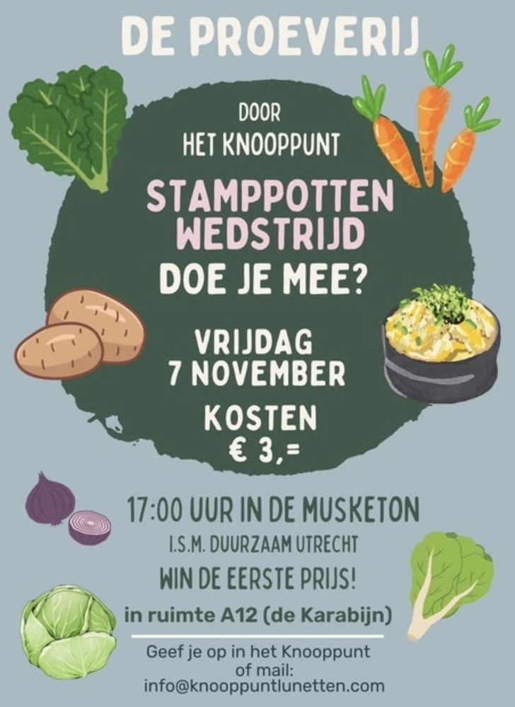 7 november 2025, vanaf 17.00 uur: Stamppottenwedstrijd georganiseerd door Knooppunt Lunetten in de Musketon. kosten 3 euro. Aanmelden verplicht bij info@knooppuntlunetten.com